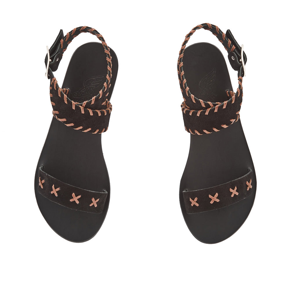 Ifigenia boldly nods to the detail of the season: visible stitching. Referencing the craftsmanship of the sandal itself, with a traditional aesthetic, the sandal is crafted in crosta suede and features chunky whip stitching around the edges of the straps and in crosses across the front. The ankle strap is secured by our signature winged buckle. Choose your favourite shade and wear with maxi skirts or jeans.