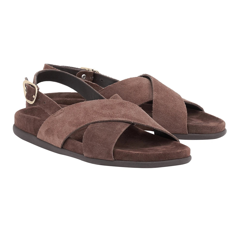 Footbed styles come back this season with our Ikesia in Crosta Leather. Available in Dark Brown and Tampa.