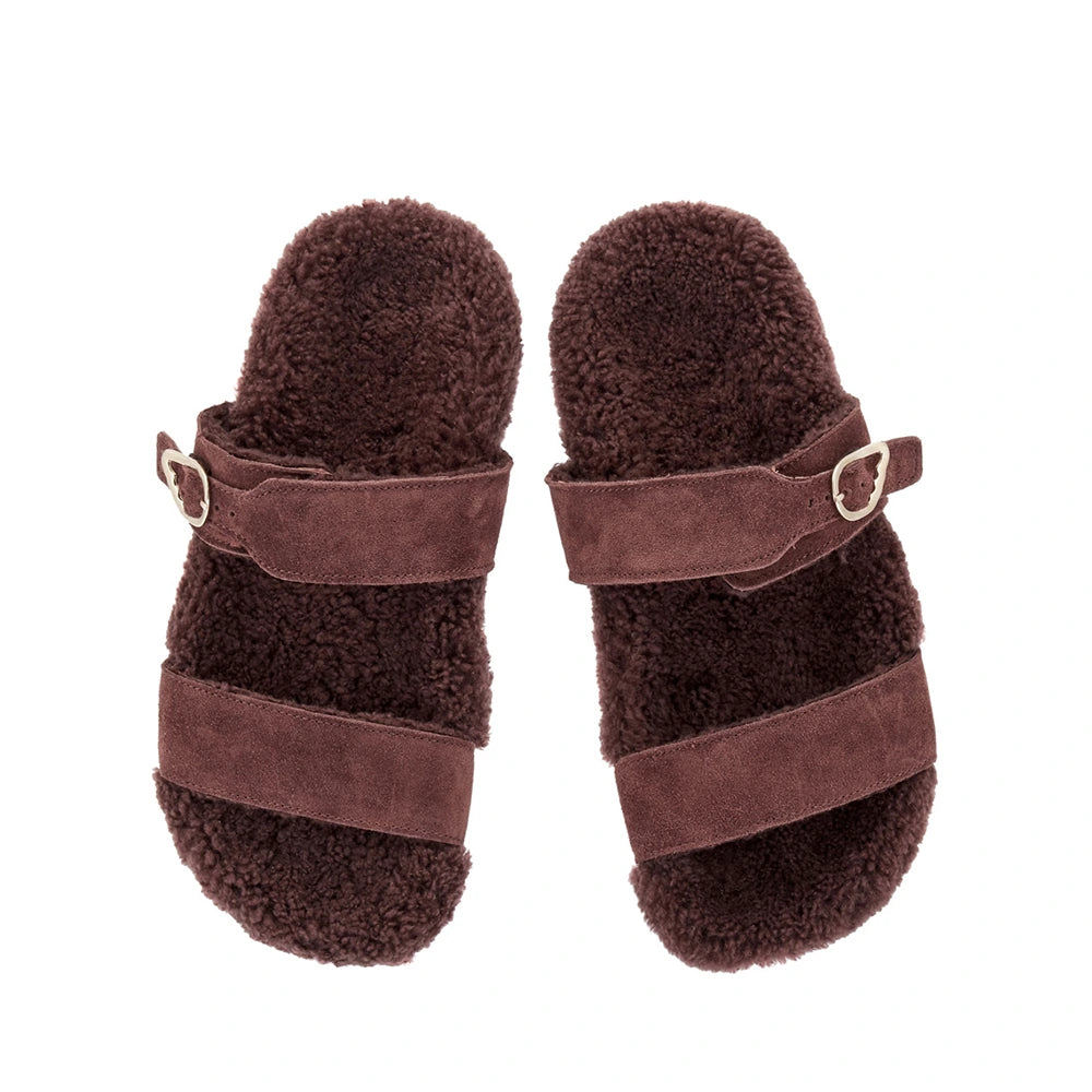 Slip into the Latria – and relax. Our double-strap slide has Crosta suede straps and a footbed lined in sheepskin, for an equally sumptuous feel whether you’re running errands in the city or entertaining at home. Choose your shade from a palette of soft neutrals and pair with your softest socks. Note the signature wing-shaped buckle for adjustments.