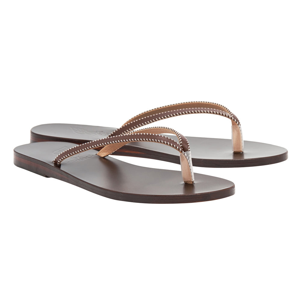 Saionara is our classic flip-flop shape, given a twist. This version is constructed in a faux leather and features delicate stitching around the edges which gives pleasing definition to the style. It's an elegant detail that elevates this simple shape, for a style that you'll turn to again and again. Laid-back enough to pair with denim, chic enough to wear with tailoring.