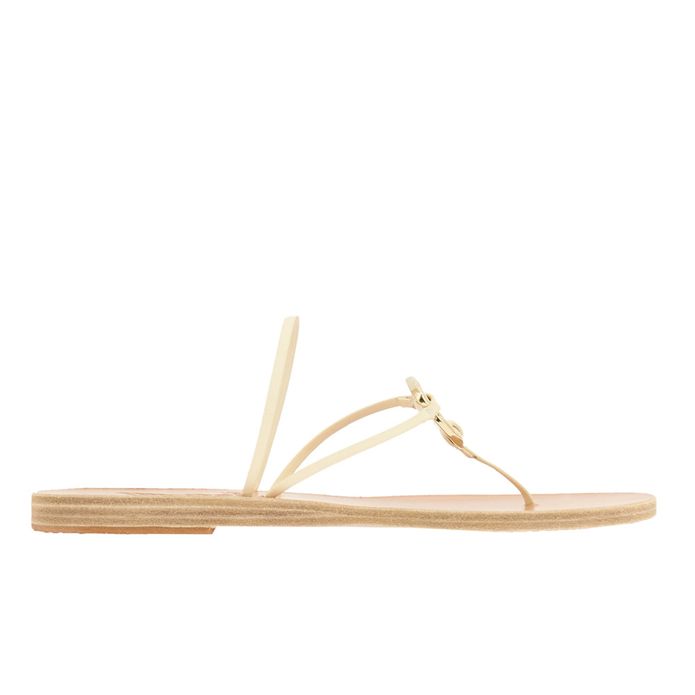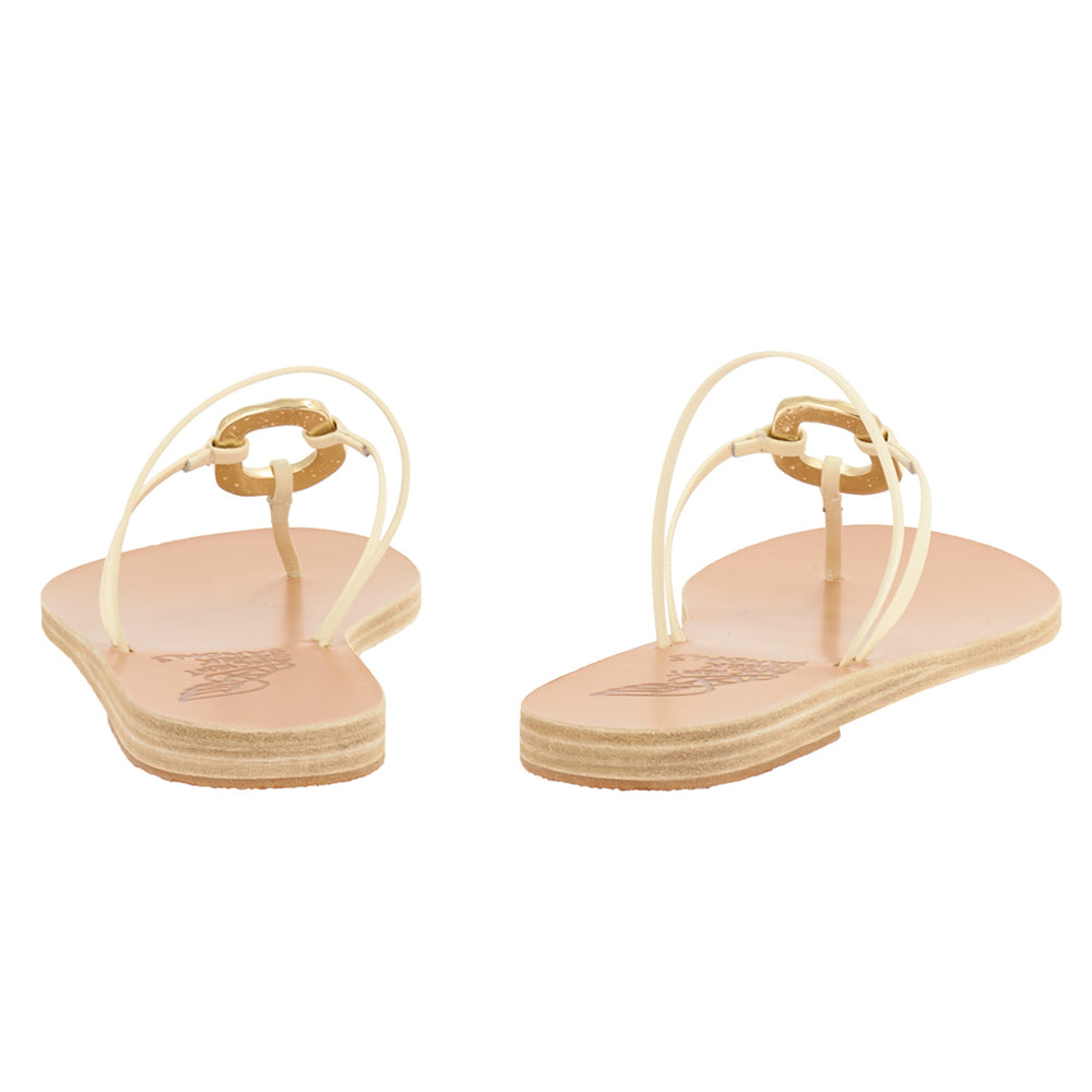 Ancient Greek Sandals’ Sfyra sandal is a thong slide which means hammer and is named after Hephaestus tool. This small gold ring detail ads a nice elegant touch to a simple yet sophisticated sandal.