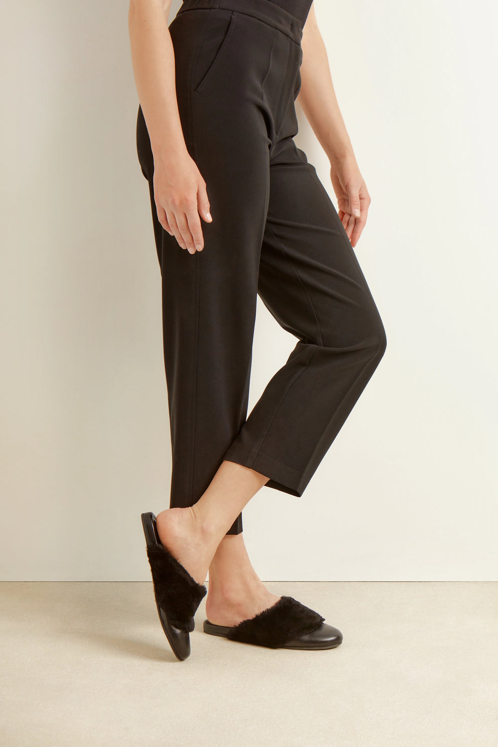 Thyone is a slip-on style in nappa leather and sheepskin – a take on our popular Slipper. Soft and comfortable, with a modern edge, it features a wide band of shearling. An ideal transitional style, we love to see Thyone styled for weekend errands, or slipped on when entertaining at home.