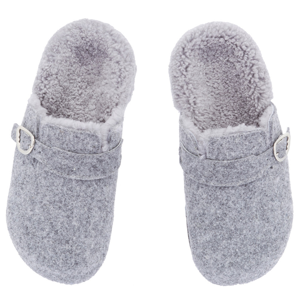 Meet Vasilitsa – robust enough to take you around town, comfortable enough to make you wonder if you really need to leave home at all. The cocooning footbed is lined in sheepskin, and the rounded closed toe is finished in felt with an accent strap and signature wing-shape buckle. Choose the neutral shade that works with your wardrobe.